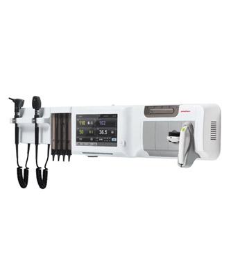 Integrated Diagnostic System is an advanced vitals management and physical assessment solution to quickly examine the patient and make decisions based on accurate, complete information. It has an easy-to-read color TFT LCD touchscreen with an integrated otoscope, ophthalmoscope & tongue depressor. The wall-mounted system saves valuable floor space and eliminates tangled or hanging cords.