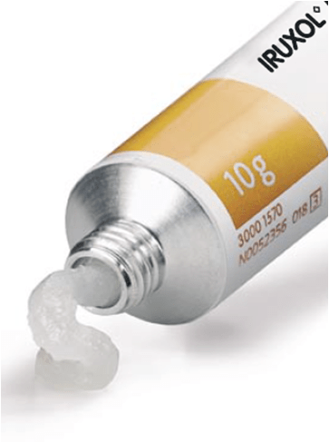Iruxol contains collagenase, a natural enzyme that breaks down sloughy tissue and necrotic eschar gently and effectively. It is selective in its action by working on only dead tissue not causing harm to the healthy ones. Iruxol can be used for wound cleansing in various types of ulcerations, including decubitus ulcers and in poorly healing necrotic wounds.