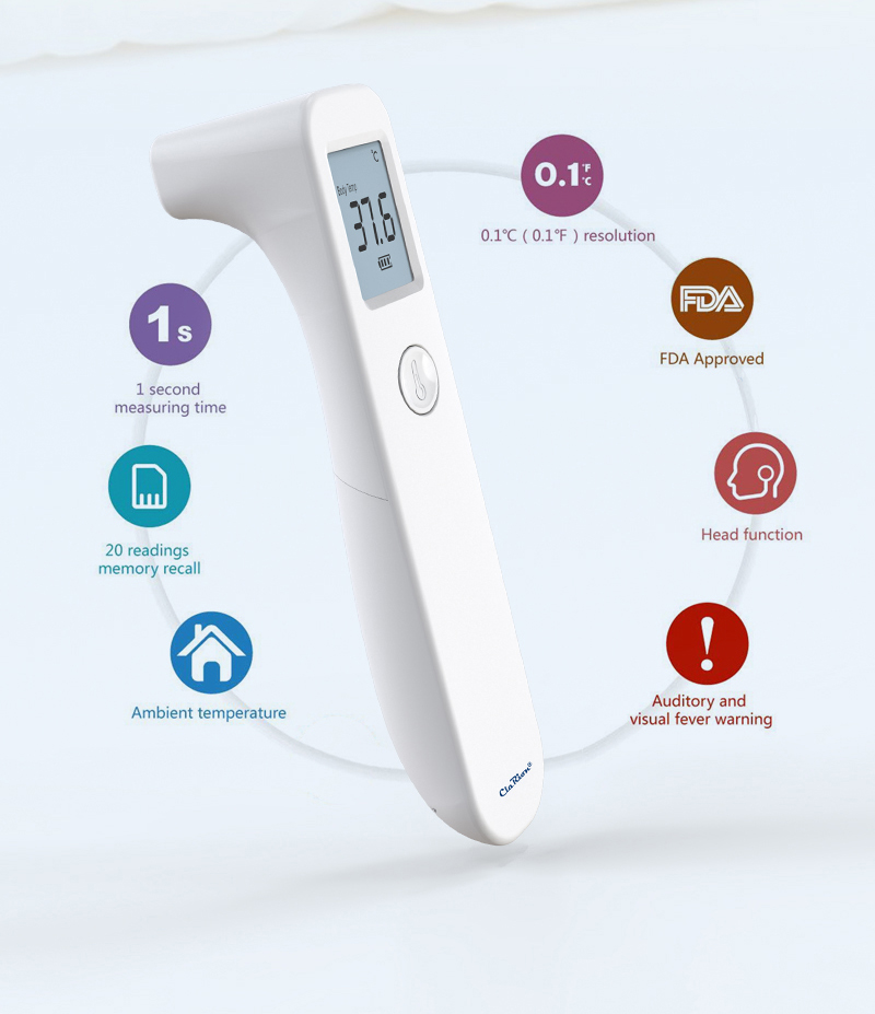 ClaRion LX201 is a Non-Contact Medical Grade Digital Infrared Thermometer, designed to take an accurate temperature at a distance without the need of contact. You simply aim the thermometer at the patient’s forehead and it will give you a reading within 1 second.Â